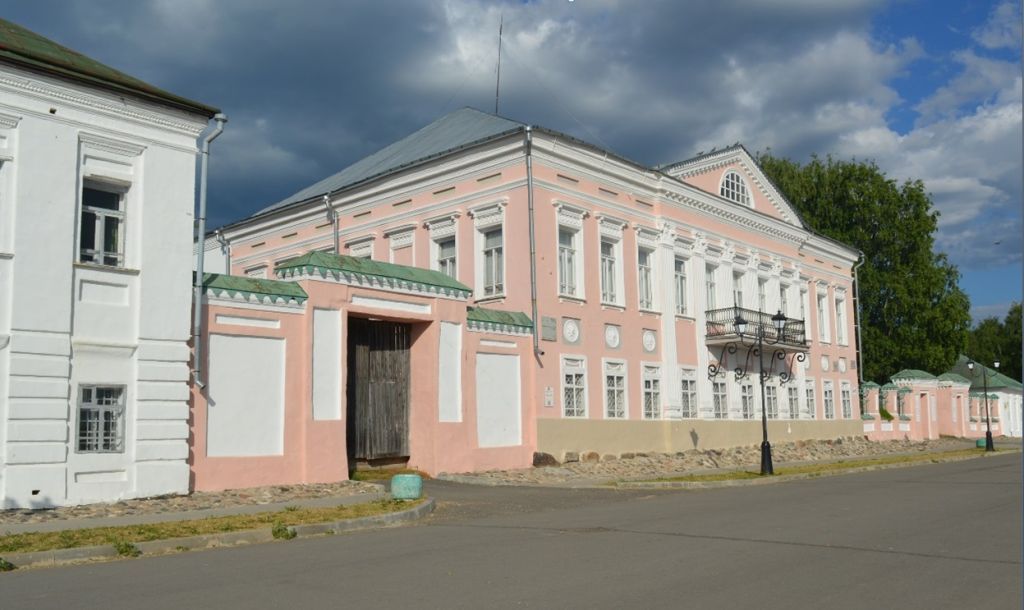 Градостроительные характеристики ансамбля:- местоположение и градостроительная роль ансамбля в формировании планировочной и композиционно-пространственной структуры исторического центра и набережной Великого Устюга: комплекс усадьбы, замыкающий с юга центральную часть застройки набережной реки Сухоны;- пространственно-планировочная структура ансамбля, включая соотношение застроенных и незастроенных площадей, в том числе озелененных и неозелененных территорий, открытых и закрытых пространств, функциональная организация территории, местоположение зданий, сооружений и элементов благоустройства, характер озеленения, силуэтные характеристики ансамбля, включая его композиционные и высотные акценты в структуре окружающего городского ландшафта;- видовые раскрытия на ансамбль с набережной и противоположного берега реки;- наружные и внутренние визуальные связи элементов ансамбля;- композиционный и высотный акцент, представленный главным домом.Планировочные характеристики ансамбля:- объемно-планировочная структура ансамбля, включая планировку внутренней территории усадьбы, местоположение зданий, въездных ворот и калиток, их габариты и композиционное взаимодействие, соотношение застроенных и незастроенных территорий;- особенности планировочной организации территории ансамбля, включая пространственно-планировочную композицию ансамбля, и расположение главных фасадов зданий по одной композиционной оси с оградой и воротами: относительно небольшой прямоугольный участок на севере, граничащий с флигелем соседней усадьбы, на востоке - с кирпичной хозяйственной постройкой другого владения;- местоположение исторического въезда на внутреннюю территорию, расположенного в ограде по красной линии застройки между главным домом и хозяйственным флигелем, фланкированного двумя калитками, заключенными в массивные пилоны.Композиционные и объемно-пространственные характеристики:- объемно-пространственная организация ансамбля, выдержанная в стиле строгого классицизма, с характерным размещением основных пространственных зон на одной композиционной оси с главным домом:а) главный дом: двухэтажное кирпичное здание, выстроенное в стиле раннего классицизма, выходящее на красную линию набережной главным (западным) фасадом, основной объем здания прямоугольный, завершенный вальмовой кровлей;б) хозяйственный флигель: протяженное кирпичное одноэтажное здание, расположенное на углу квартала, главным (западным) фасадом обращенное на красную линию набережной, южный фасад, служащий границей участка усадьбы, прямоугольный объем, завершенный вальмовой крышей; постройка из трех разновременных объемов, самый ранний (западная часть корпуса) - в стиле раннего классицизма, остальные – в формах позднего классицизма и эклектики;в) ограда с воротами, примыкающая к зданию с западной стороны (северный участок ограды с воротами – кон. XVIII в.); короткий северный участок ограды с глухими пряслами, в центре - однопролетные ворота; прясла и пилоны ворот с обеих сторон, обработанные нишами и завершенные профилированными венчающими карнизами;г) ограда с воротами, примыкающая к зданию с восточной стороны (южный участок ограды с воротами – II пол. XIX в); участок ограды, возведенный в формах эклектики; въезд на территорию усадьбы, фланкированный д