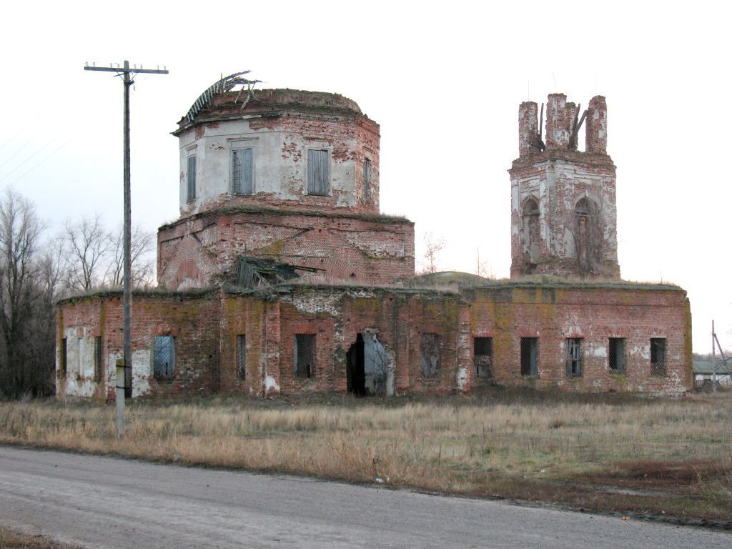 По сведениям из библиографических источников («Историко-статистическое описание Тамбовской епархии», 1911 г.): «Большие Алабухи. Церковь каменная, теплая, построена в 1873 году на средства прихожан». Однако, натурные обследования кирпичной кладки стен (западная стена колокольни, восточная стена трапезной) показали наличие участков без перевязки кирпичной кладки (вертикальные швы), что говорит о поэтапном строительстве объемов церкви. В подполе трапезной обнаружены основания стен первоначального объёма.По архивным сведениям Большеалабуховского сельского поселения Грибановского муниципального района: «В 1787 году село принадлежало графу Семену Романовичу Воронцову. В селе стояли каменная, Никольская церковь, деревянный господский дом с плодовым садом…». Следовательно, можно предположить, что в 1873 году церковь в селе не вновь построена, а расширена (распространена) существовавшая уже ранее церковь.К концу XIX – началу ХХ веков это была крупная церковь в формах эклектики с элементами стиля классицизм. Перед западным фасадом церкви было построено двухэтажное кирпичное здание школы (церковно-приходская школа? земская?). Церковная территория была обнесена металлической оградой на каменных столбах (не сохранилась).Церковь расположена на площади Революции в историко-архитектурном, ландшафтном и растительном окружении центра села Большие Алабухи. К юго-востоку от церкви расположен небольшой парк, на территории которого расположены памятники односельчанам участникам гражданской войны и погибшим в годы Великой Отечественной войны (1941-1945).Несмотря на частичную утрату первоначальных исторических объёмов (верхние ярусы колокольни и светового барабана, кровли), архитектурный облик церкви сохранил характерные для классицизма монументальность, симметрично-осевую композицию, и доминирует в окружающем ландшафте.Объемно-пространственная композиция здания сложилась за два периода строительства (выводы по результатам натурного обследования). Первоначально объём церкви представлял собой тип одноглавого храма в форме «корабля».В 1873 году церковь была распространена - к храмовой части со стороны северного и южного фасадов были пристроены объёмы приделов, трапезная расширена за счет боковых нефов. Здание приобрело вид крупного одноглавого крестово-купольного храма с трёхъярусной колокольней. Фасады оформлены в стиле классицизм. Западным фасад колокольни дополнен четырёхколонным портиком тосканского ордера с отдельно стоящими колоннами, северный и южный фасады приделов аналогичными портиками с трёхчетвертными колоннами.Повышенный четверик средокрестия акцентирован восьмигранным световым барабаном с куполом, увенчанным главкой с крестом. К четверику средокрестия примыкают равновысокие объемы: прямоугольные в плане боковые приделы, апсида и трапезная с колокольней над западной частью объёма. Все ярусы колокольни – четверики, в завершении – полусфера купола с высоким шпилем (не сохранились).Объёмы трапезной, приделов и апсиды завершены скатными кровлями.Габариты здания по продольной и поперечной оси крестообразного плана около 38,0 (м) х 26,0 (м). Высота храмовой части – 20,0 (м).В настоящее время от исторического объемного построения церкви осталась основная часть объемно-пространственной композиции. Утрата верхнего яруса 