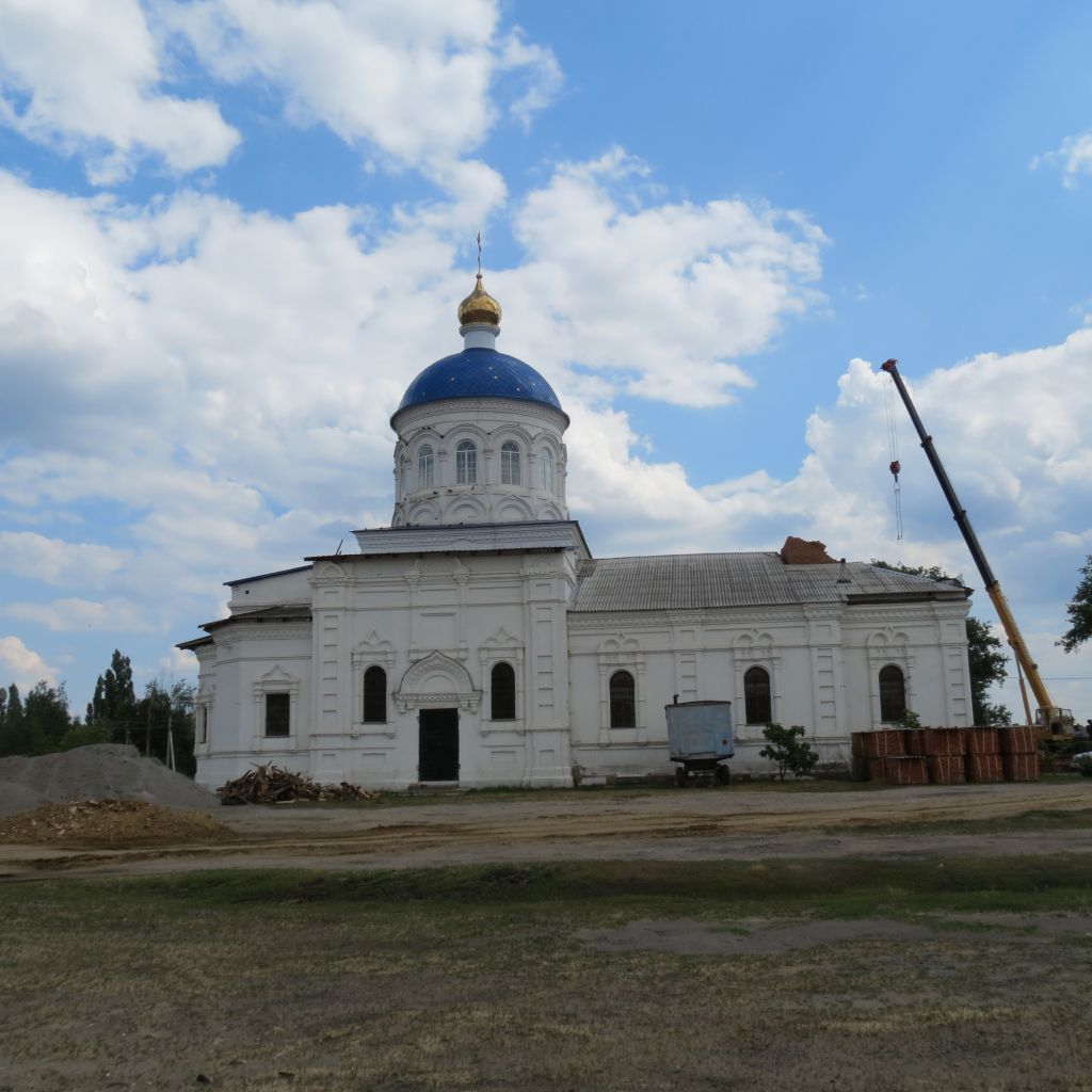 Церковь обладает историко-культурной ценностью по следующим основаниям:- исторической градостроительной ценностью, так как являлась одной из архитектурных доминант внешнего кольца доминант Калача, сформированной во второй половине XIX века и создававших величественный фон исторической панорамы центра слободы Калача на фотографиях начала ХХ века; - построена в 1899 году предположительно известным воронежским архитектором С.Л. Мысловским в эклектичных формах русского стиля, характерного для исторической застройки Калача; - историческая архитектура церкви, несмотря на утрату верхних ярусов колокольни, обладает подлинными особенностями эклектики характерной для конца ХIХ века, в которой используются формы и элементы русского стиля, выполненные с использованием приемов кирпичного стиля. Предмет охраны объемно пространственной композиции: - архитектурный облик объемно-пространственной композиции соответствует эклектике, сочетающей формы и приемы различных этапов русского православного зодчества; - объемы нижнего яруса колокольни, трапезной, храмовой части и апсиды, формирующие геометрически правильную симметричную пространственную композицию в форме ковчега; - объемно-пространственная структура композиционного построения церкви: состав, габаритные размеры, масштабные соотношения, пространственные структуры объемов; - расположение объемов вдоль главной планировочной оси, проходящей с запада на восток через вершину креста храмовой части и центр среднего полукружия апсиды;- доминирование храмовой части в объемно-пространственном построении церкви, объемы трапезной и трехчастной апсиды примыкают к храмовой части с востока и запада;- трапезная равной высоты с нижним ярусом колокольни и средней прямоугольной частью апсиды. Четверик храмовой части возвышается относительно этих объемов;- сложное построение трехчастной апсиды. Боковые части апсиды и средняя полукруглая часть, выступающая вперед в виде ризалита одной высоты, но понижены относительно средней прямоугольной части; Рекомендуется уточнить описание Предмета охраны при разработке научно-проектной документации по сохранению церкви.Предмет охраны интерьера:- внутренняя пространственно–планировочная структура традиционная для трехпрестольных православных культовых сооружений с трехнефной трапезной, которая развернута вдоль главной планировочной оси (с запада на восток). -- планировочная схема обеспечивает четкое горизонтальное зонирование помещений, традиционное для православных церквей. Вход в церковь через западное помещение - притвор, расположенный в нижнем четверике колокольни. Из притвор вход в трехнефную трапезную, каждый из нефов которой ведет в храмовую часть и далее в алтарь.- ядро храмовой части развивается по горизонтали; - оригинальные архитектурно-конструктивные схемы каждого помещения церкви, вне зависимости от технического состояния;- архитектурные конструкции каждого объема: тип, размеры, структура, материал, строительная техника. Все архитектурные конструкции выложены из красного кирпичаОсобенности фасадов, составляющие Предмет охраны: - в декоре фасадов используются формы и элементы русского стиля, выполнены с приемами кирпичного стиля;- композиционные особенности, расположение и габаритные размеры фасадов нижнего и 
