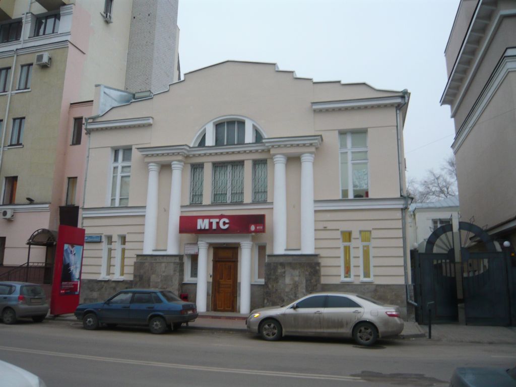 Здание состоит из двух разновременных объемов. Первоначальный, двухэтажный объем главным фасадом ориентирован на красную линию ул. Орджоникидзе (Воскресенской), построен по проекту архитектора М.Н. Замятнина в 1914 году. К этому объему примыкает пристроенный в 1930-е годы корпус, вытянутый вдоль улицы Дзержинского (предметом охраны не является). Камерная объемно-пространственная двухэтажная композиция построена в формах неоклассицизма. Построение объема сложное в плане имеет выступ со стороны торцевого фасада. Облик фасада определяется формами неоклассицизма с элементами декора в неоклассическом стиле. Симметричная композиция фасадной плоскостей построена на акценте повышенной средней части фасада, декорированной римским портиком. Сдвоенные колонны портика несут антаблемент, разделяющий окно на две части. Нижняя часть окна прямоугольная, состоит их трех окон, верхняя – арочная полуциркульная. Портал главного входа оформлен как портик с треугольным фронтоном. Массивный выносной карниз фасада прерывается по месту креповки аттика над римским портиком. Оштукатурен, окрашен. Софит выносной плиты акцентирован ритмом сухариков Над карнизом располагается стенка аттика.Венчающий карниз классической уступчатой формы расположен вдоль фасадной стены. Нижняя плоскость венчающей части карниза гладкая.Портик условно можно назвать римским по зрительному образу. Формы и пропорции архитектурных элементов не подчиняются строгим классическим принципам. Сдвоенные стенные трехчетвертные колонны расположены на мощных постаментах, которые завершены в форме уступа. Антаблемент тянется по стене в виде массивного карниза, объединенного с гладким фризом, и получает над капителями колонн выступы, симметричные относительно центра аттика. Ширина и глубина выступов соответствует стволам колонн, так, что карниз прямоугольно заворачивается вокруг этих выступов, то есть раскреповывается. Нижняя плоскость карниза украшена мутулами.Симметричный аттик сложной уступчатой формы, акцентирует трехосевую центральную композицию фасада, декорированную римским портиком.Стенка аттика, понижена симметричными прямыми уступами. Повышенная центральная часть, расположенная над портиком, совмещена с фасадной плоскостью, напоминая щипец. Портал размещен на оси симметрии здания. Портал главного входа оформлен как портик с треугольным фронтоном. Архитектурные элементы соответствуют центральному портику. Тимпан расположен в плоскости стены, гладкий.Стена первого этажа на высоком цоколе, отделенным уступом от фасадной плоскости, обработана досчатым рустом. Рустованное поле первого этажа пересекают окна-щели.Оконный проем состоит из двух частей: нижней и верхней, разделенных антаблементом портика. Каждая часть сгруппирована из трех проемов, разделенных простенками. Деления верхней и нижней части совпадают по горизонтали.Нижняя часть окна имитирует строенное окно: в центре прямоугольный проем, по бокам узкие прямоугольные проемы.Верхняя часть окна арочная, формируется из трех проемов – части полукруга, разделенные простенками.Узкий прямоугольный проем, расположенный на рустованной стене первого этажа. Пространство вестибюля разделено на три части двумя прямыми разгрузочными арками: Первая арка отделяет пространство, расположенное при в