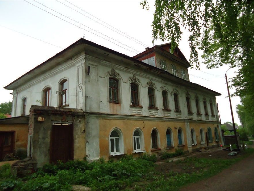 Композиционные особенности здания, расположенного на неровном рельефе, участвующего в формировании красной линии Волжской набережной, формирующего левобережную панораму города;объёмно-пространственная композиция двухэтажного с мезонином в три оконных оси здания, сложного в плане, состоящего из двух прямоугольных объёмов двухэтажного основного с симметрично расположенными одноэтажными небольшими входными тамбурами, примыкающими к северному и южному фасадам с восточной стороны, с примыкающим с севера по линии главного фасада сохранившимся пряслом ограды с калиткой, и одноэтажного дворового со скошенными углами, примыкающего к основному объёму на уровне второго этажа с востока; слуховые окна в тимпанах мезонина; габариты и четырёхскатная форма вальмовой крыши основного объёма; двускатная форма крыши мезонина; трёхскатная форма вальмовой крыши дворового объёма;местоположение, габариты, конфигурация и оформление дверных и оконных проёмов здания: осевое расположение оконных и дверных проёмов; полуциркульная форма окон первого этажа западного фасада и двух западных осей окон южного фасада основного объёма; лучковая форма окон второго этажа северного, западного и южного фасадов основного объёма; прямоугольная форма окон первого этажа северного фасада и восточной оси южного фасада основного объёма; характер столярных заполнений оконных проёмов: фрамуга с раздвоенным средником лекальных очертаний, нижняя рама с четырёх стекольным переплётом окон первого этажа западного фасада;материал капитальных стен: капитальные стены основного объёма из красного глиняного кирпича; материал мезонина - дерево; материал кровли -металл;композиционное решение и архитектурно-художественное оформление фасадов, включая низкий рельефно выделенный кирпичный цоколь на западном фасаде; профилированная междуэтажная тяга на северном западном и южном фасадах основного объёма; лопатки на фасадах основного объёма: угловые и фасадная, отмечающая место примыкания поперечной стены, - с прямоугольной штукатурной филёнкой на первом этаже и с прямоугольной штукатурной филёнкой с циркульным разрывом и круглой штукатурной розеткой в центре на втором этаже; антаблемент, состоящий из широкой мелко профилированной тяги, гладкого фриза и карниза большого выноса по периметру основного объёма; прямоугольные горизонтальные филёнки со сдвоенными «бриллиантовыми» квадратами под окнами второго этажа западного фасада; тонкая профилированная аркатурная тяга с развитым лепным декором в арках цветочные гирлянды, розетки, трилистник, маскарон льва, - над окнами второго этажа западного фасада; мелко профилированные штукатурные рамочные наличники с небольшими импостами, опирающимися на мелко профилированные штукатурные подоконные полки на фасадах основного объёма; криволинейные очертания западного фронтона мезонина с полуциркульным завершением и ложными симметричными стенками лекальных очертаний, фланкированными прямоугольными вертикальными деревянными пилонами (целесообразно восстановить при проведении научной реставрации); прямоугольная с полуциркульным завершением тесовая вставка, выступающая относительно плоскости фронтона, фланкированная волютообразными завитками (целесообразно восстановить при проведении научной реставра