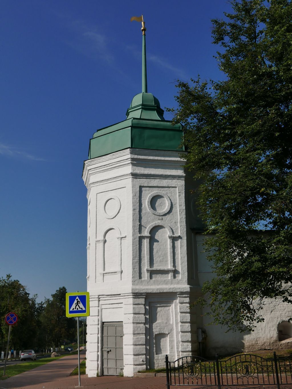 Градостроительные характеристики cооружения:- Местоположение у пересечения северо-восточной и юго-восточной стен и градостроительные характеристики сооружения 1803 года – одного из элементов ограды ансамбля монастыря;Архитектурные характеристики и конструктивные элементы объекта:- Объемно-пространственная композиция двухъярусной восьмигранной башни, в том числе высотные отметки по венчающему карнизу;- Фигурная крыша барочной формы башни, в том числе высотные отметки по зениту кровли и шпилю башни; - Композиционное решение и архитектурно-художественное оформление фасадов сооружения 1803 года, включая размер, форму, местоположение и форма ниш, руста, пилястр и горизонтальных тяг, венчающий карниз из профилированного кирпича;- Материал и характер отделки фасадных поверхностей: известковая обмазка стен; - Характер заполнения дверного проема – металлическая дверь с тяжелым засовом;- Пространственно-планировочная структура здания в пределах капитальных стен и сомкнутого свода первого этажа 1803 года;- Капитальные стены и перекрытия 1803 года.