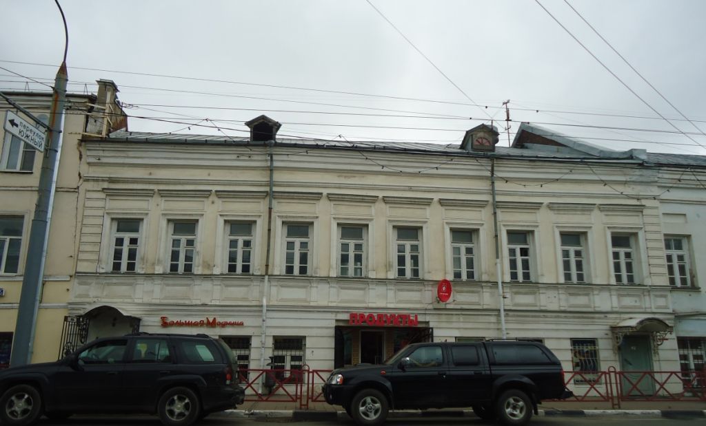 Композиционные особенности здания, участвующего в формировании сплошной застройки красной линии Большой Октябрьской улицы;объёмно-пространственная композиция трапециевидного в плане двухэтажного объёма с центральным прямоугольным сквозным проездом, вытянутого вдоль красной линии Большой Октябрьской улицы; слабый ризалит в центре лицевого фасада; количество и осевое расположение оконных проёмов на фасадах; дверной проём в восточной части лицевого фасада; габариты и двухскатная форма кровли; сквозной проезд в центре здания с плоским перекрытием конца XIX века и подпружной аркой 1840-х годов;материал капитальных стен: капитальные стены из красного глиняного кирпича, сложенные способом верстовой кладки;композиционное решение и архитектурно-художественное оформление фасадов, включая сплошной горизонтальный руст простенков первого этажа; крепованные ступенчатые карнизы в завершении первого и второго этажей; угловые рустованные пилястры на обоих этажах; междуэтажный фриз, расчленённый стилизованными короткими пилястрами, фланкирующими горизонтальные филёнки, расположенные на оконных осях; рамочные штукатурные каннелированные наличники окон второго этажа с прямоугольными гладкими стилизованными импостами в нижней части; горизонтальные надоконные филёнки окон второго этажа с профилированными сандриками-полочками над ними; габариты и форма дверных и оконных проёмов;характер обработки фасадной поверхности:оштукатуренныеповерхности наружных стен;пространственно-планировочная структура интерьера: историческая планировка в капитальных стенах.