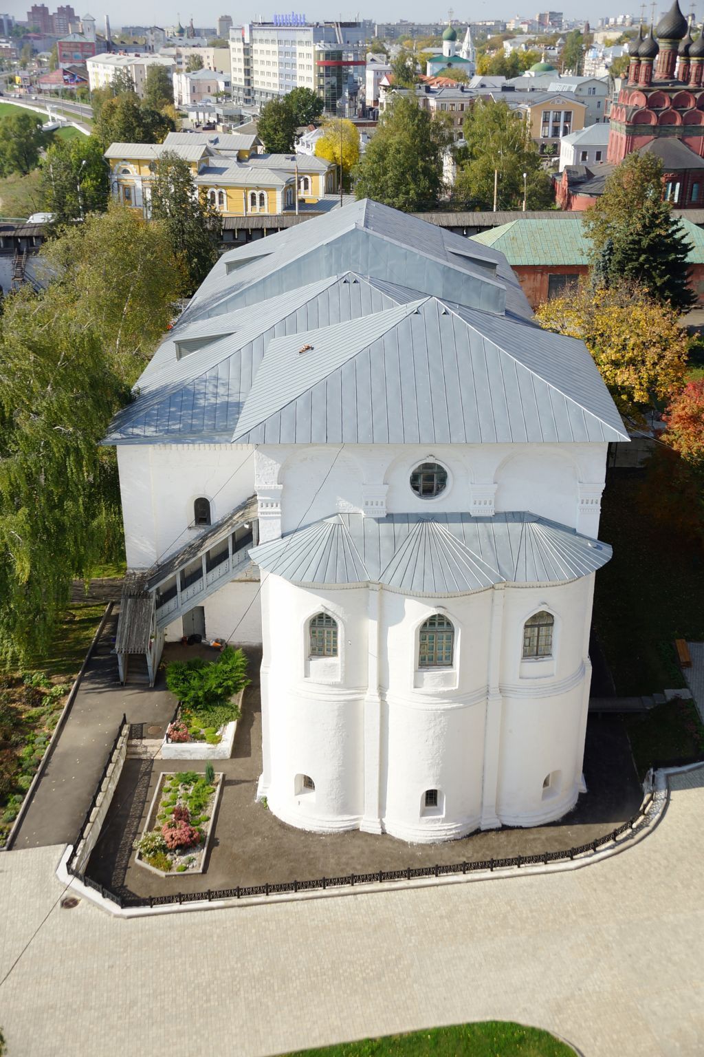 Местоположение и градостроительные характеристики здания 1-й трети XVI века, конца XVI века, первой половины XVII века, 1809, 1890 годов – одного из элементов композиционного ядра ансамбля монастыря;- Объемно-пространственная композиция здания, соединившего в себе церковь, трапезную и настоятельский корпус, кирпичное крыльцо, примыкающее к северному фасаду. их структура, вертикальные и горизонтальные членения; лопатки, карнизы, межэтажные тяги, в том числе высотные отметки по венчающим карнизам, галереям;- Крыши: скатные кровли основного объема и крыльца на каменном основании; - Композиционное решение и архитектурно-художественное оформление фасадов здания 1-й трети XVI века, конца XVI века, первой половины XVII века, 1809, 1890 годов, включая размер, форму, местоположение и оформление оконных и дверных проемов;- Материал и характер отделки фасадных поверхностей; - Характер столярных заполнений дверных и оконных проемов, металлические решетки оконных проемов;Пространственно-планировочная структура здания в пределах капитальных стен, столбов, арочных проемов, сводов 1-й трети XVI века, конца XVI века, первой половины XVII века;Капитальные стены и перекрытия 1-й трети XVI века, конца XVI века, первой половины XVII века.