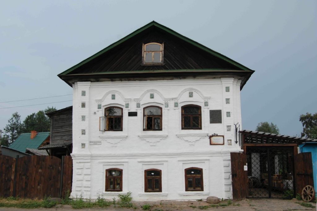 Градостроительная характеристика здания, участвующего в формировании застройки небольшой исторически сложившейся площади на пересечении улиц Первомайской и 9 Января, отмечающего трассу дорегулярной улицы.объемно-пространственная композиция прямоугольного в плане здания, вытянутого по оси север-юг вглубь двора, состоящего из каменного двухэтажного объема середины XVIII в. и деревянного двухэтажного объема 1810-х гг. (бревенчатого прируба со двора); габариты, высотные отметки по коньку, двускатная форма прямой крыши с двумя треугольными щипцами, зашитыми тесом; осевое расположение, габариты, конфигурация, оформление и лучковая форма оконных проемов; чердачные окна, помещенные в центре лицевого и дворового щипцов крыши; материал, конструкция и характер капитальных стен: капитальные стены объема середины XVIII в. из красного глиняного кирпича, сложенные способом верстовой кладки; капитальные стены деревянного объема 1810- х годов из бревен диаметром 30 см, рубленных «в обло». композиция и архитектурно-художественное оформление фасадов, сложившееся в середине XVIII в.. включая междуэтажный и подкарнизный профилированные пояса по периметру; угловые лопатки первого этажа с крупным рустом «в разбивку»; угловые пилястры второго этажа с «ширинками»; кирпичные рамочные наличники окон первого этажа с профилированными подоконниками и надоконными полочками; кирпичные наличники окон второго этажа бараночного рисунка; полихромные сюжетные изразцовые вставки в «ширинках» пилястр, «очелье» и «ушках» наличников второго этажа; табличка между окнами второго этажа с надписью «Угличскаго мещанина Ивана Васильевича Калашникова», относящаяся к середине XIX в.; характер обработки фасадной поверхности: оштукатуренные поверхности наружных стен; полихромные изразцовые вставки на фасадах; открытая бревенчатая кладка деревянного объема; пространственно-планировочная структура, сложившаяся в середине XVIII в.: историческая планировка: горница в каменном объеме, сени и изба в деревянном объеме, связанные между собой внутренними дверными проемами;элементы декоративного убранства интерьера: каменный пол нижнего этажа, собранный «в елочку».