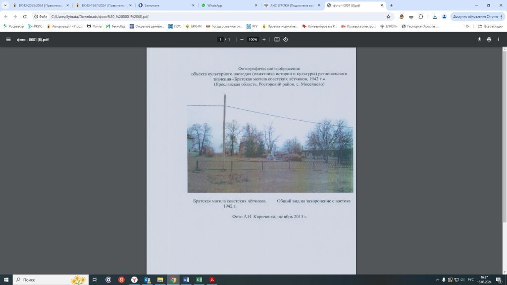 - существующее месторасположение захоронения в структуре села Мосейцево;- захоронение (могила) с останками лётчиков экипажа самолёта, потерпевшего аварию в 1942 г. (Анохин, Пилипенко, Работнов), и сопровождающими захоронение предметами.