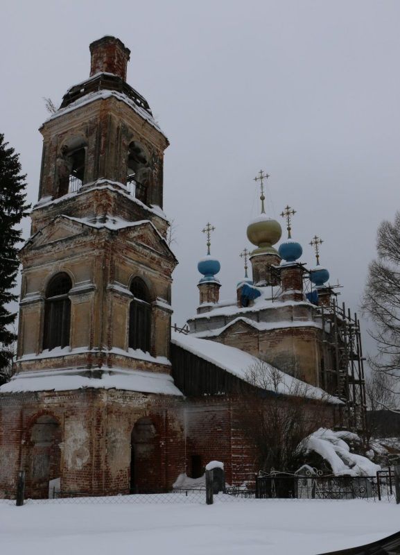 Предметом охраны объекта культурного наследия регионального значения (памятника) «Церковь Богоявления Господня», 1801 – 1806 гг. (Ярославская область, Борисоглебский район, с. Уславцево, д. 1А, стр. 2), в составе объекта культурного наследия регионального значения (ансамбля) «Ансамбль церкви Богоявления Господня», 1801 – 1806 гг. (Ярославская область, Борисоглебский район, с. Уславцево, д. 1А), являются: - местоположение и градостроительная роль объекта культурного наследия, являющегося градостроительной высотной доминантой и композиционным акцентом села Уславцево и окрестного ландшафта;- объемно-пространственная продольно-осевая композиция бесстолпного пятиглавого храма с колокольней, вытянутого по оси запад восток, включающая: прямоугольную в плане паперть с двумя надстроенными ярусами колокольни; одноэтажный прямоугольный в плане объем трапезной; двусветный квадратный в плане четверик с плавно скругленными углами, увенчанный пятью главами на граненых барабанах; примыкающую к четверику с востока полукруглую апсиду; - капитальные стены паперти, колокольни, трапезной, четверика и апсиды, столбы трапезной, сложенные из красного глиняного кирпича; кирпичные сводчатые перекрытия: крестовые своды трапезной, колокольни, сомкнутый свод четверика; конха апсиды; перемычки проемов; барабаны, выполненные из красного глиняного кирпича; кирпичная лестница, ведущая на колокольню; - характер обработки фасадной поверхности стен – оштукатуренные и окрашенные поверхности наружных стен (колористическое решение уточняется методами научной реставрации); - металлические внутристенные и воздушные связи; - рельефно выделенный цоколь с продухами, кирпичный, оштукатуренный;- форма, габариты и местоположение исторических арочных проемов колокольни, оконных проемов с лучковыми перемычками в трапезной, четверике, люкарн на куполе четверика (в том числе заложенных и ложных);- форма, габариты и местоположение исторических входных проемов (в том числе заложенных): проемы с лучковыми перемычками в южной и северной стенах четверика; входной проем со стороны западного фасада; - характер исторических столярных заполнений и расстекловки заполнений оконных проемов; волнисто-ромбические решетки оконных проемов;- характер исторических деревянных заполнений дверных проемов; металлическая фурнитура дверных проемов (петли, задвижки);- историческая форма и габариты крыши: восьмигранный купол колокольни, четырехгранный купол четверика; скатная крыша апсиды; двускатная крыша трапезной; характер кровельного покрытия крыш – металл на фальцевом соединении; - архитектурно-художественное оформление первого яруса колокольни (притвора): открытые арочные проемы, декорированные архивольтами с замковыми камнями на импостах, пластические выступы стен, образующие центральную нишу, в которую вписан арочный проем, а также креповку угловых частей стен, венчающий профилированный карниз с рядом дентикул в завершении яруса; - архитектурно-художественное оформление второго яруса колокольни: раскрепованная в угловых частях плоскость стены, образованная углами яруса и выступающими порталами вокруг арочных проемов; оформление арочных проемов рельефно выделенным архивольтом, замковым камнем в шелыге архивольта; оформление арочных порталов: по сторонам от арочных про