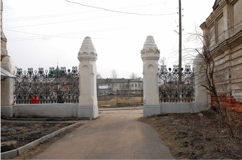Предметом охраны объекта культурного наследия регионального значения «Ограда с воротами», 1888 – 1890 гг., входящего в состав объекта культурного наследия федерального значения «Усадьба Локалова», 1888 – 1890 гг. (Ярославская область, Гаврилов-Ямский район, с. Великое, ул. Ярославская, д. 14), являются:- композиционные особенности ограды, участвующей в формировании застройки по улице Ярославской в центральной части села к северо-востоку от пруда Черного;- объёмно-пространственная композиция ограды: по южной части (по левому флангу) – кирпичная оштукатуренная ограда с металлическими коваными заполнениями и со столбами ворот; по восточной части (по правому флангу) – кирпичная оштукатуренная ограда с металлическим кованым заполнением и деревянной колодой с металлическими маклаками для навешивания калитки;- количество и осевое расположение прясел ограды, проемов ворот и калитки на восточной части фасада;- композиционное решение фасадов: основной объем южной части каменных столбов ворот с оградой – центральная часть проема въездных ворот, по сторонам проезда высокие столбы завершены профилированными восьмигранными карнизами, поясами килевидных кокошников и высокими гранёными ступенчатыми навершиями; по флангам от проема ворот ограды – металлические кованые решетки, закрепленные в столбиках квадратного сечения, связанные между собой высоким цоколем; ограда в восточной части – кованая решетка, закрепленная в столбиках квадратного сечения, на цоколе и деревянная колода с металлическими маклаками для навешивания калитки;- архитектурно-художественное оформление фасадов по улице Ярославской по правому и левому флангу:линейная ассиметричная объёмно-пространственная композиция: пять опорных столбов и три пролёта решётки, прясла – узкие (3 оси) угловыезападный и восточный пролёты, широкий пролёт, примыкающий к главному дому с запада (в 6 осей); широкий проём в западной части для въездных ворот, узкий проём в восточной – для входной калитки;прясла ограды состоят из высокой чугунной кованой решетки на кирпичном оштукатуренном цоколе с профилированной верхней кромкой и четырёхгранных столбов с фасками на углах и круглыми филёнками на гранях, столбы расположены на месте примыкания к особняку и к западной стене ограды со ступенчатыми четырехгранными завершениями; столбы въездных ворот четырёхгранные с фасками на углах и круглыми филёнками на гранях, завершены профилированными восьмигранными карнизами, поясами килевидных кокошников и высокими гранёными ступенчатыми навершиями;узор кованой решётки в формах модерна, раппорты орнамента решетки, усложненного рисунка с геометрическими и растительными элементами: нижним рядом из омегообразно разомкнутых колец, обращённых разъёмами вниз и соединенных перехватами; вертикальными прутьями квадратного профиля, увенчанными простыми кольцевыми розетками и разделяющими повторяющиеся мотивы; омегообразные диагонально поставленные завитки у основания прутьев; фигурные рамы повторяющихся мотивов, завершенные раздвоенными завитками; заполнение мотивов узором растительного орнамента с верхними и нижними отображенными трилистниками-кринами и некрупными завитками; крупными упрощенными центральными кольцами, расположенными на оси вертикальных прутьев и объединяющих мотивы со 