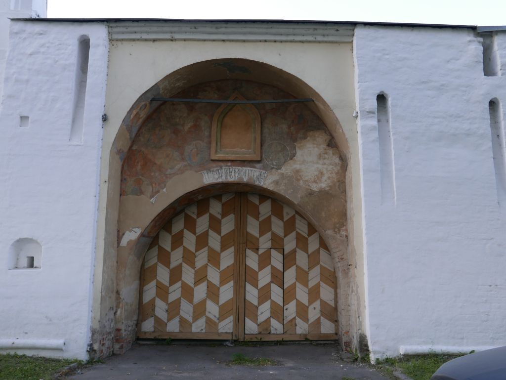 Градостроительные характеристики cооружения:- Местоположение и градостроительные характеристики оборонного сооружения 1-й трети XVII века – одного из элементов южных укреплений ансамбля монастыря;Архитектурные характеристики и конструктивные элементы объекта:- Объемно-пространственная композиция одноэтажного сооружения с одноэтажной пристройкой к восточному фасаду, в том числе высотные отметки по карнизам;- Вальмовая крыша, ее конструкция, материал, характер кровельного покрытия, в том числе высотные отметки конька; - Композиционное решение и архитектурно-художественное оформление фасадов cооружения первой трети XVII века, включая размер, форму, местоположение и оформление оконных и дверных проемов, ниш и бойниц;- Декоративное оформление фасадов: заглубленные в ниши проемы ворот, киоты с обеих сторон, фрагменты живописи на южном фасаде;- Материал и характер отделки фасадных поверхностей: известковая обмазка стен; - Полотнища ворот со стороны южного фасада глухие деревянные, двустворчатые, расписанные в шашечку, со стороны северного – резные деревянные двустворчатые;- Характер столярных заполнений дверных и оконных проемов пристройки;- Роспись в арке южных ворот;- Пространственно-планировочная структура сооружения в пределах капитальных стен, арочных проемов, цилиндрического свода 1-й трети XVII века;Капитальные стены и перекрытия 1-й трети XVII, XIX веков;Земляной пол ворот, дощатые полы помещения привратника.