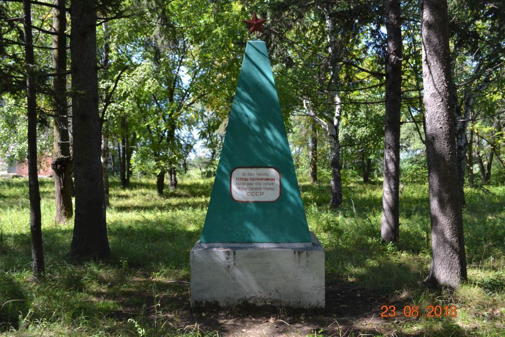 -захоронение (останки);-обозначение захоронения надмогильным сооружением; мемориальная надпись на надмогильном сооружении: «Вечная память героям-пограничникам, погибшим при охране государственной границы СССР».