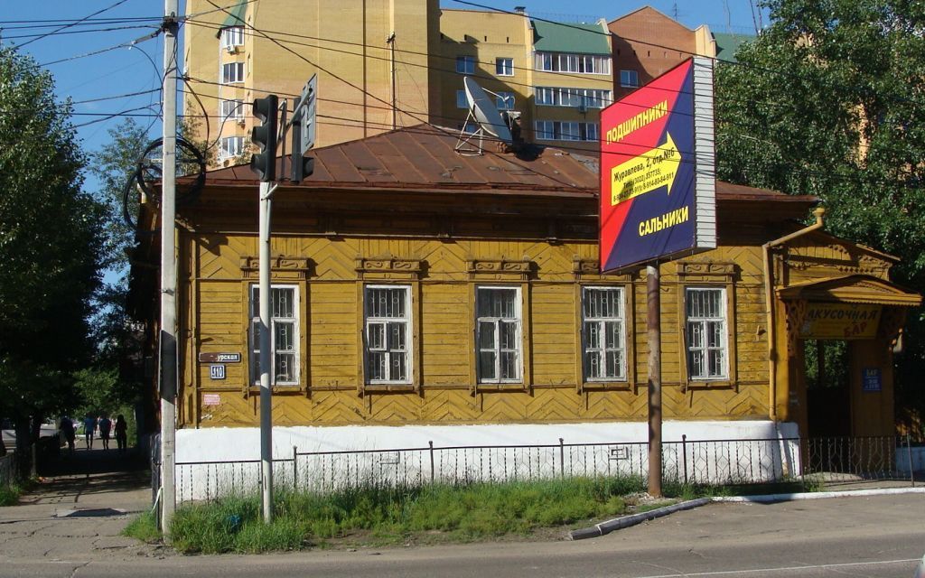 I. Градостроительные:1.1. Расположение: Главные юго-западный и северо-западный фасады фиксируютисторические линии застройки ул. Амурская и Журавлева.1.2. Габариты: одноэтажное деревянное здание, Г - образное в плане 12,47 х 25,34 х 17,971.3. Силуэт. Сформирован вальмовой крышей основного объема и односкатнымикрышами галерей.II. Архитектурные:II. 1. Стиль. Эклектика.11.2. Объемно-планировочное решение: крупный Г-образный в плане деревянныйодноэтажный дом. К юго-восточному и северо-восточному фасадам примыкают открытыегалереи с парадным входом на юго-восточном фасаде и дополнительным входом насеверо-западном фасаде. На северо-восточном фасаде веранда с дополнительным входом.11.3. Материал. Стены - бревенчатый сруб с калеванной обшивкой; кровля -металлическая, с фальцевым соединением.11.4. Элементы фасадов.П.4.1. Обшивка. Широкие плахи с имитацией калевки, в подоконье и в простенках вышепроемов - «в ёлочку», в уровне оконных проемов - горизонтально, над проемами -вертикально, границы подчеркнуты профилированной рейкой.11.4.2. Венчающий карниз. Вынос венчающего карниза по периметру дома декорированподзором из просечного железа, прижатым профилированной рейкой.11.4.3. Фриз. По периметру дома по низу рейка прямоугольного сечения, раскрепованнаялопатками. По осям простенков фриз расчленен прямоугольными элементами спрофилированным карнизом, миниатюрными свесами и накладкой «бриллиантовогоруста». Поля между элементами заполнены накладными разорваннымипрямоугольниками, с рельефной розеткой в центре, обрамленными рамками изпересекающихся реек. На лопатках - разорванный прямоугольник с розеткой в центре.11.4.4. Пояса. На границе разных направлений обшивки, разорваны лопатками,профилированные.11.4.5. Лопатки. На углах и перерубах главных фасадов, филенчатые с накладнымиэлементами: в подоконье - бриллиантовый руст, в уровне оконных проемов -разорванный прямоугольник с полукруглыми выступами на торцовых сторонах и срозеткой в центре, над оконными проемами - прямоугольник с полукруглыми выступамина торцовых сторонах.11.4.6. Проемы оконные. Прямоугольные, рамы деревянные двойные распашные и глухиес фрамугами, ставни филенчатые. На северо-восточном фасаде восточного крыласоставное окно со складными филенчатыми ставнями.11.4.7. Наличники: Прямоугольная лобань расчленена по вертикали профилированнымикарнизами, раскрепованными на флангах. Нижняя часть декорирована аналогично фризу,с накладными вертикальными элементами на флангах и разорванным прямоугольником скругом в центре. Верхняя часть украшена по оси и на флангах прямоугольныминакладными элементами с бриллиантовым рустом, между которыми выполненысимметричные криволинейные элементы. Над венчающим карнизом полукруглыеэлементы с радиальными прорезями на флангах и по оси. Центральный элементподдерживают симметрично расположенные криволинейные пропильные элементы. Низналичника с прямоугольными накладками, с круглым элементом в центре и элементамибриллиантового руста под стойками, с криволинейным очертанием свесов.11.4.8. Галерея на юго-восточном фасаде с парадным входом, и выходом на дворовуютерриторию, на столбах прямоугольного сечения, с калеванной подшивкой потолка.Односкатный фронтон над парадным входом с вертикальной калеванной обшивкой. Скатфронтона и венчающий карниз украшены подзором