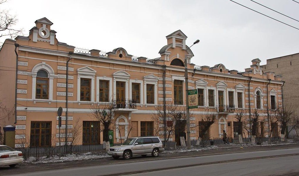 1. Градостроительные характеристики.1.1. Местоположение. В исторической застройке сплошным фасадом. Главный северо-восточный фасад фиксирует историческую линию застройки ул. Амурская.1.2. Габариты, силуэт. 2-х этажное здание, прямоугольное в плане. Силуэт сформирован фигурными завершениями ризалитов и парапетными столбиками.2. Архитектурно-конструктивные характеристики.2.1. Объемно-пространственная композиция. Здание, с продольными несущими стенами и подвальными помещениями, перекрытыми кирпичными сводами. Единственный лестничный блок, объединяющий все уровни здания, выделен ризалитом на юго-западном фасаде. Подвальные помещения, кроме выхода на лестничную клетку, имеют выходы в приямках на северо-восточном и юго-западном фасадах. Ассиметричность главного фасада подчеркнута ризалитами парадного входа и правого фланга. Дополнительный вход в здание предусмотрен на юго-западном фасаде.2.2. Материал стен. Кирпичные. Главный фасад не оштукатурен.2.3. Крыша. Двускатная с щипцовым фронтоном на юго-восточном фасаде. К парапетным завершениям ризалитов примыкает двускатная кровля, объединяющая слуховые проемы с чердаком. Покрытие кровли металлическое. Водосток организован настенными желобами и водосточными трубами.2.4. Парапетное ограждение.2.4. а) Столбики. Над простенками главного фасада с плоскими боковыми гранями, с лицевой гранью завершенной ступенчатым карнизом и криволинейной верхней гранью с металлическим покрытием, имеющим просечный край.2.4.6. Парапет ризалита. Прямоугольная стена, возвышающаяся над кровлей, с профилированным карнизом, разорванным лопатками, увенчана ступенчатыми башенками с зубчатыми завершениями над флангами и прямоугольным столбиком по оси, объединенными невысокой стенкой с профилированным карнизом. В уровне венчающего карниза основного объема два прямоугольных чердачных проема с жалюзийными решетками.2.5. Проемы. Прямоугольные, с деревянными 1-3-х частными рамами с фрамугами.2.6. Композиция и архитектурно-художественное оформление фасадов.2.6.1. Венчающий карниз. На северо-восточном фасаде кирпичный ступенчатый, с применением отесанного кирпича, над флангами оконных проемов поддержан ступенчатыми кронштейнами, разорван ризалитами главного фасада. На юго-западном фасаде — ступенчатый.2.6.2. Фриз Главный фасад, за исключением ризалитов завершен фризом, подчеркнут по нижнему контуру поясом кирпичной кладки с применением отесанного кирпича.2.6.3. Межэтажный пояс. На юго-западном фасаде, ступенчатого профиля.2.6.4. Подоконный карниз 2-го этажа. На главном и юго-западном фасадах, ступенчатого профиля. На главном фасаде карниз разорван ризалитами.2.6.5. Нишки. На главном фасаде прямоугольные. На первом этаже - под оконными проемами между ризалитами, на втором этаже - в подоконной плоскости под простенками, на левом фланге, в уровне межэтажного пояса, по 2 - между проемами, по одной - в простенках.2.6.6. Рустовка. Рустованная кладка на главном фасаде выполнена до разных уровней: на левом фланге - до верха оконных проемов, на остальной плоскости - до середины оконных проемов 1-го этажа.2.6.7. Цоколь. В простенках главного фасада цоколь облицован гранитными плитами, остальные плоскости цоколя оштукатуренные.2.6.8. Лопатки главного фасада.2.6.8. а) Ризалиты. На флангах от уровня земли до зубчатого завершения парапета, Лопатки в н