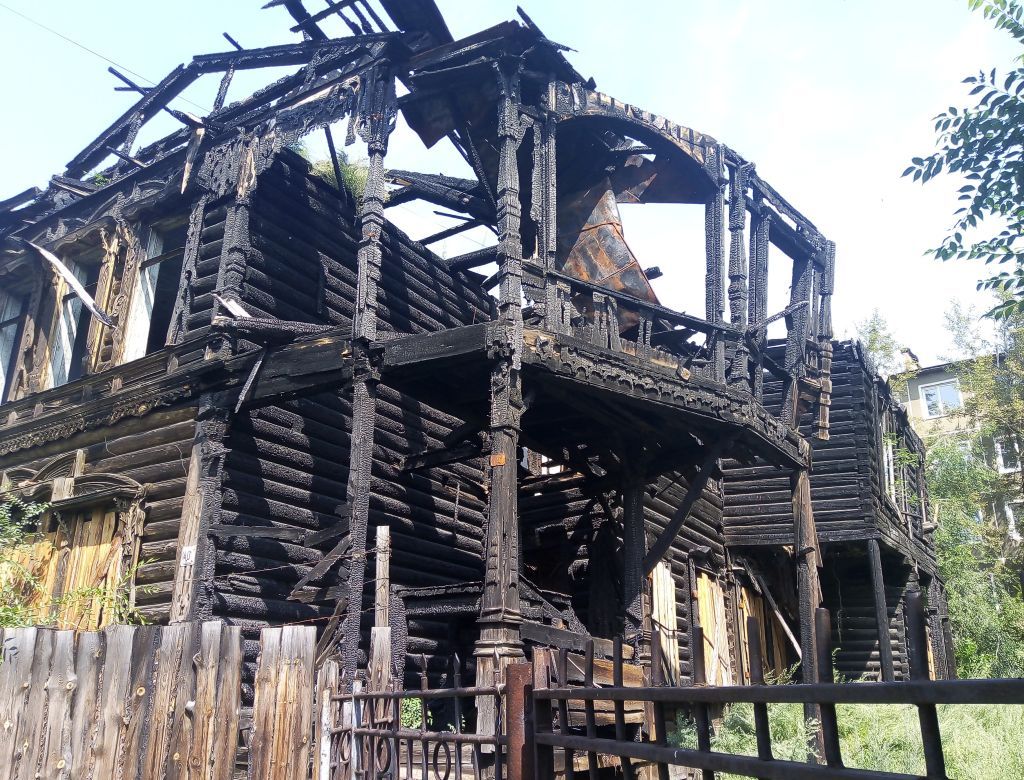 Объемно-пространственная и планировочная композиция здания: здание переменной этажности, расположенное в глубине территории объединенного квартала, ограниченного улицами Ленинградская Смоленская - Горького - Угданская, со сложным ступенчатым планом, размером 25,98x20,4 м, с силуэтом, сформированным разновысокими объемами и треугольными фронтонами, образец деревянной архитектуры стиля модерн.Сложная композиция составлена тремя, составляющими одно целое, объемами: северо-западным одноэтажным, со скошенными углами на северо-восточном фасаде, юго-восточным - двухэтажным и средним - одноэтажным, объединяющим их в Н-образный план. Ризалит на правом фланге 2-го этажа юго-восточного фасада опирается на 4 столба. На левом фланге юго-восточного фасада в уровне 1-го этажа лестница, ведущая на 2-й этаж, и 5 резных колонн, поддерживающих веранду в уровне 2-го этажа, со скошенным южным углом. Вдоль северо-восточного фасада одноэтажных объемов выполнена терраса на резных стойках. Конструкция кровли здания сложная, с сочетанием двускатных и вальмовых крыш. Примечательной особенностью является то, что на главном фасаде двускатная крыша над северо-западным объемом, нависает над крыльцом главного входа, а двускатная крыша над двухэтажным объемом накрывает часть веранды. Углы нависающих крыш поддержаны резными колоннами. Исторические входы расположены: на северо-восточном фасаде - в северо-западном объеме, в скошенномвнутреннем углу между средним и двухэтажным объемам и в торце 2-х этажного объема, на юго-восточном фасаде - через веранду с блоком лестницы.Строительные конструкции: открытый бревенчатый сруб с обшивкой на северо-западном фасаде и в подоконной плоскости на юго-западном и юго- восточном фасадах.Композиция и архитектурно-художественное оформление фасадов: на веранде в уровне 1-го этажа 5 резных колонн. Трапециевидный выступ веранды, нависающий над крыльцом входа, поддержан криволинейными резными кронштейнами. На углах веранды и под навесом кровли основного объема резные колонны с кронштейнами 2-х типов: на выступающем объеме — фигурные криволинейные, на колонне под основной кровлей — крупные с пропильным криволинейным рисунком.Проемы выступающего объема на скошенном углу - с лучковым завершением, на юго-восточном и юго-западном — прямоугольные, с узкими резными наличниками и профилированными подоконными карнизами.Простенки украшены накладной пропильной резьбой. Плоскости под проемами, ограниченные резными горизонтальными полосами, украшены накладными прямоугольными пластинками с вертикальными прорезями на боковых сторонах.Проем в габаритах основного объема имеет пропильное ограждение с фигурным завершением над резной стойкой по оси. Между фигурными пропильными кронштейнами от венчающего карниза выполнен дощатый свес криволинейного очертания с пропильной резьбой растительного рисунка по контуру, накладной резьбой с пикообразным свесом по оси и фризом из вертикальных пропильных пластин с криволинейным рисунком, аналогичным фризу верхнего ряда основного объема.Межэтажный карниз по низу веранды, украшен вертикальными пластинками с пропильным сложным криволинейным рисунком, рядоммелкой пропильной резьбы с растительным рисунком и полосой с рельефным рядом бриллиантового руста.Фриз на выступающем объеме вера