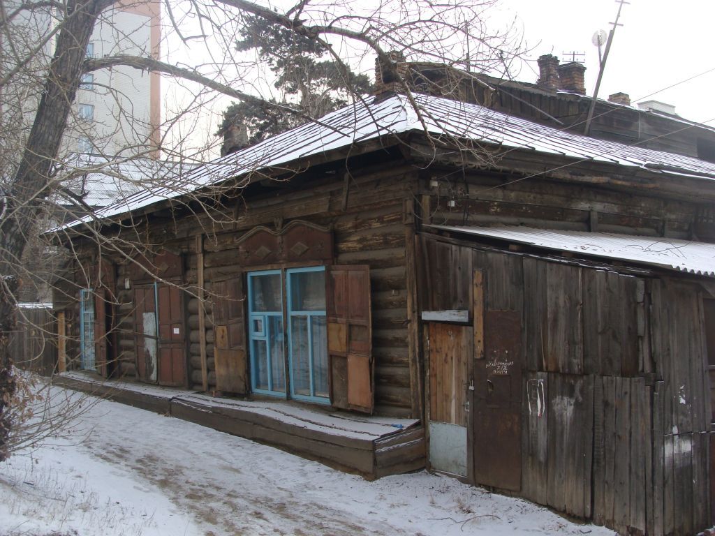 Предметы охраны:I.Градостроительные:1.1. Расположение. Главным северо-восточным фасадом фиксирует красную линию за-стройки улицы Хабаровская.1.2. Габариты. Крупный деревянный одно-двухэтажный дом с историческими тамбурами входов на дворовых фасадах.1.3. Силуэт. Силуэт дома формирует вальмовая крыша одноэтажной части и двускатная двухэтажной с небольшим перепадом по высоте.II. Архитектурные:II. 1. Объемно-планировочное решение. Сложный в плане: прямоугольный с одноэтажным объемом, имеющим большой вынос по правому флангу вдоль красной линии застройки. Юго-западная часть дома двухэтажная с балконом-галереей на северо-западном и юго-западном фасадах - не имеет аналогов. В уровне венчающего карниза на юго-западном фасаде балкон с входом на чердак - не имеет аналогов. Не имеет аналогов. Вход в помещения второго этажа по наружной лестнице с северо-западного фасада. Одноэтажный объем имеет традиционный боковой парадный вход через открытую веранду и тамбур. На северо-западном фасаде, в уровне балкона на столбах устроен тамбур входа в квартиру, ориентированную на юго-запад. Тамбуры входов на юго-западном и северо- западном фасадах. В юго-западной части дома глубокие подполья. Во внутренней планировке парадные комнаты расположены вдоль юго-восточного фасада.II.2. Материалы: Стен - круглые бревна, кровля - черный металл, окрашенный суриком.II.3. Элементы фасадов:II.3.1. Фриз - горизонтальная обшивка широкими калеванными досками.II.3.2. Лопатки по углам и перерубам гладкие с фасками, декорированы в верхней части прямоугольной профилированной рамкой.II.3.3. Элементы фасадов одноэтажного объема:II.3.3.1. Венчающий карниз дощатый с лобовой доской с подзором, прижатой профилированной рейкой (с-в, ю-в, с-з фасады).II.3.3.2. Парадный вход: на левом фланге главного фасада.II.2.3.2.а. Навес на резных столбах (сохранился один столб у входа), декорированный лобовой доской с подзором.II.3.3.2.6. Тамбур под двускатной крышей на юго-восточном фасаде.II.З.З.З. Оконные проемы: пять двойных окон. Каждое окно состоит из двух деревянных переплетов, объединенных широкой рамой наличников, с распашными наружными створ-ками и глухой фрамугой с расстекловкой: фрамуга 3-х стекольная с узкими стеклами по флангам, створки 3-х стекольные с прямоугольными стеклами вверху и внизу. Со двора три обычных окна.II.3.3.4. Наличники. Двойные окна: лобань имеет волнообразное (не имеет аналогов), симметричное очертание с понижением по оси окна с профилированным карнизом с де-коративными свесами по флангам в виде завитков. По оси окна над карнизом декоратив¬ный резной элемент в виде трилистника, под карнизом - резной накладной элемент .... В плоскости лобани по оси - миниатюрный накладной элемент «солнечная розетка». Анало-гичные элементы расположены по флангам лобани. Симметрично центральной розетке под высокими «амплитудами волны» крупные накладные ромбы с обработанными «на кант» гранями.II.3.3.4.а. Фартук: двойной, под каждым переплетом имеет волнообразное симметрич¬ное очертание с крупным накладным ромбом пр оси. Узкие стойки оформлены свесами плавного криволинейного очертания.II.2.3.4.6.Ставни. Двойных окон: 6-ти филенчатые, двустворчатые. Окно юго- восточного фасада: 6-ти филенчатые, одностворчатые.II.3.3.5. Окно северо-западного фасада: окно из одного переплета. II аличник этого окна - фрагмент наличника составного окна 