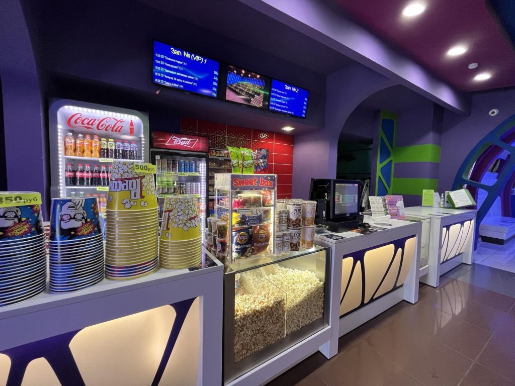 Статус кинотеатра нового поколения означает наличие не только самого современного оборудования, но и новейшей системы обслуживания гостей. Фойе кинотеатра оборудовано уютными диванами, позволяющими комфортно провести время в ожидании сеанса.