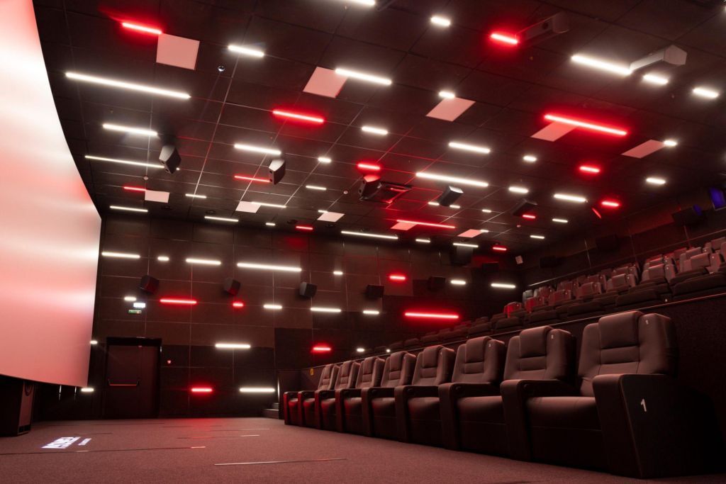 Для зрителей действуют 5 современных кинозалов с цифровыми лазерными кинопроекторами, в том числе 1 зал с системой объемного звука Dolby Atmos. Общая вместимость – 549 мест. В кинозалах есть 7 категорий зрительских мест, включая диваны для 2 зрителей, кресла-реклайнеры повышенной комфортности из экокожи, массажные кресла Yamaguchi и кровати-трансформеры Askona.