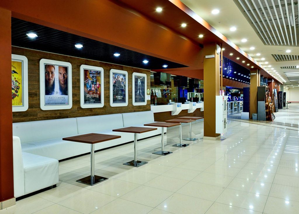 Фойе кинотеатра поражает атмосферой большого кино. Стенды новинок, плакаты классики, хорошая музыка, удобные экраны с расписанием, множество мягких диванов со столиками – все это позволяет гостям провести время в ожидании сеанса с удобством и комфортом. Также в фойе располагаются игровые автоматы, такие как «Аэрохоккей», «Футбол», «Баскетбол» и другие, что позволяет сделать ожидание начала фильма еще веселее и интереснее.