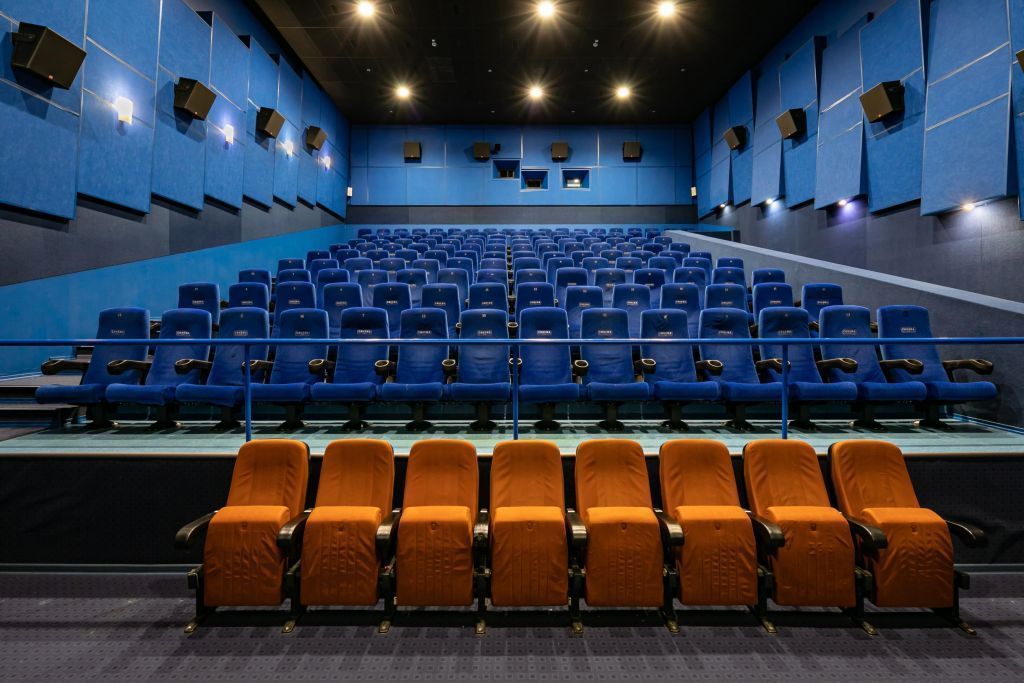 В кинотеатре есть кинобар с широким ассортиментом закусок, десертов и напитков.