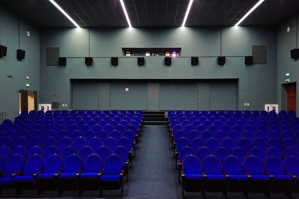 Кинотеатр оборудован кинопроектором для показа фильмов с пленки 35 мм.