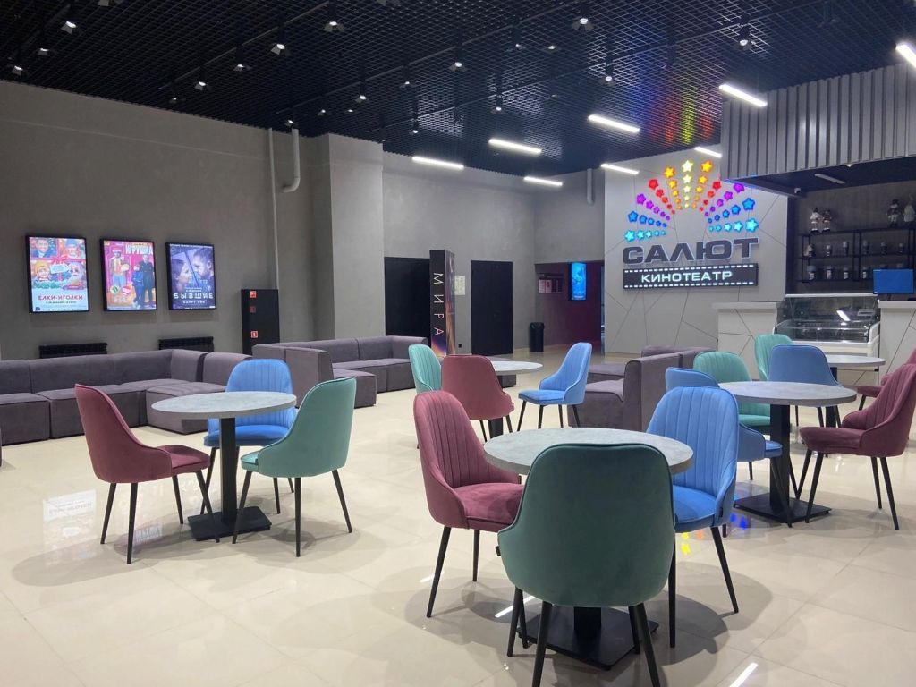 Кинотеатр «Салют» во многом стал уникальным объектом, отвечающим всем современным тенденциям как с точки зрения строительства, так и в техническом оснащении. Расположенный на втором этаже торгового центра, он занимает площадь в 660 кв. м. Кинотеатр состоит из просторного фойе, функционального кинобара и 3 кинозалов общей вместимостью 140 мест (48, 46, 46), что позволяет в пике обеспечить посещаемость в 33 824 человека в месяц.