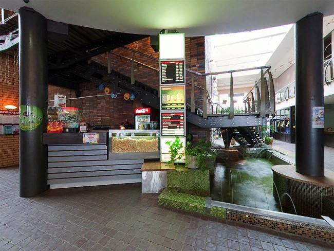 В киноцентре находится боулинг на десять дорожек,"Burger King" "Додо Пицца", " Барбершоп".