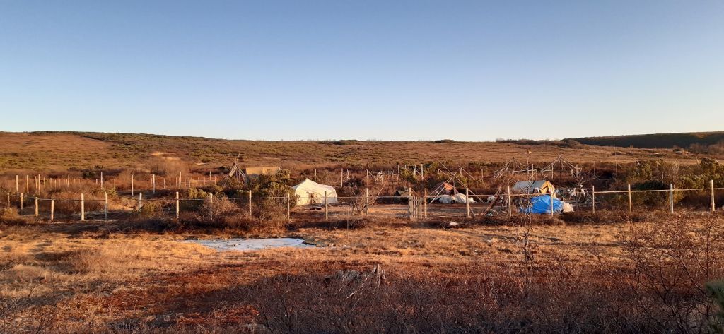 Этностойбище представляет собой загон (кораль) для ездовых оленей, палаточный лагерь и юрты. Кораль из жердей, в нем выпасаются семь оленей.