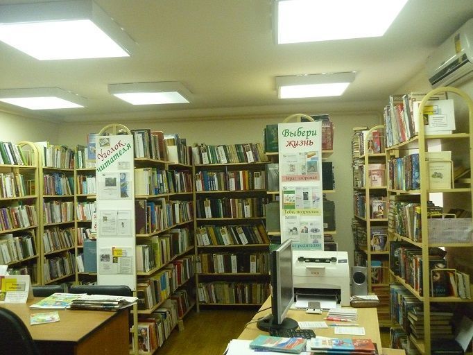 Библиотека оборудована типовыми стеллажами, читательским столом на четыре посадочных