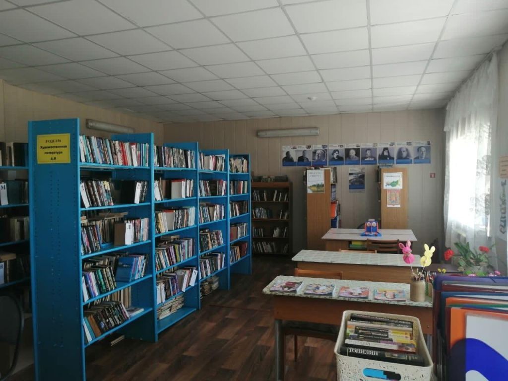 Здание, где сегодня находится сельская библиотека, было построено в начале 30-х годов. В этом здании была совхозная столовая, она занимала два этажа. На первом этаже кухня, на втором – обеденный зал. За столы одновременно могли сесть до 250 человек. Сейчас в этом здании на первом этаже располагается Дом культуры, а на втором – сельская библиотека. Здание периодически реконструировалось и ремонтировалось. На сегодняшний день в библиотеке сделан очень хороший ремонт. Фонд составляет более 12 000 экземпляров книг, ежегодно пополняется новыми книгами и периодическими изданиями. Заведующей является Сафронова Оксана Вячеславовна.