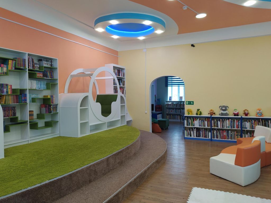 Помещения библиотеки модернизированы в соответствии с современными направлениями дизайна: приобретена новая мебель, которая позволяет зонировать пространство и делать его легко трансформируемым. В библиотеке организованы места для учебы, игры, самореализации и отдыха. Книжный фонд обновлен более чем на 1 000 экземпляров. Это книги-гиганты, книги с ароматными картинками, книги-диктофоны, книги со створками, книги-панорамы, энциклопедии с 3D-картинками и еще много интересных новинок.