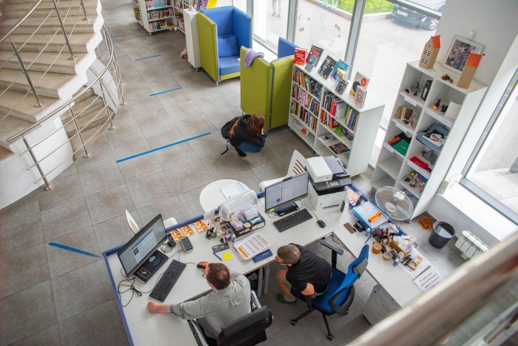 Деятельность библиотеки направлена на создание максимального комфорта пользователей. У входа находится бокс для самостоятельного бесконтактного возврата книг и журналов. В коворкинге можно воспользоваться компьютерами библиотеки или поработать со своим ноутбуком за столом или на диванчиках. Для удобства посетителей установлен кулер с водой, кофе-автомат и станция для зарядки мобильных устройств.