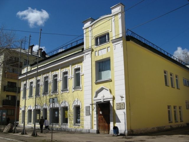 Выставочный зал Национального музея Республики Коми расположен в одном из красивейших сооружений дореволюционного Усть-Сысольска. Двухэтажное каменное здание было построено в 1912 г. для фирмы «Торговый дом Дмитрия Кирьяковича Кузьбожева и наследники».