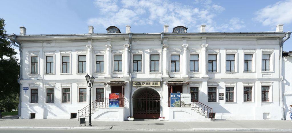 Выставочный центр музея занимает бывший дом купцов Голубевых. Это один из самых красивых домов в Муроме. Центральная часть главного южного фасада выделена 6 колонками ионического ордена и 2 высокими крыльцами, разделенными аркой, ведущей во внутренний дворик. Смотрящий на Вознесенскую церковь западный фасад необычен благодаря вставкам трехарочных венецианских окон в традиционную для Мурома сетку прямоугольных оконных проемов.