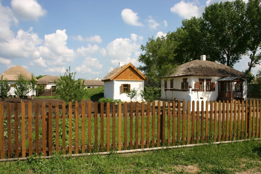 На подворье воспроизведены курень со стряпкой (летней кухней), ледник, амбар, конюшня, баз для скотины, курятник, под навесом хранятся старинные сельхозорудия: плуг-букарь, косилка-лобогрейка, борона, молотильный камень. На базу – лошади, быки, коровы, овцы, козы, домашняя птица.