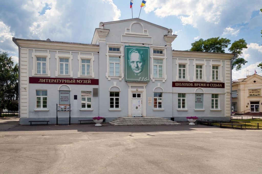 Историко-литературная экспозиция «М. А. Шолохов. Время и судьба» является одним из мемориальных объектов Государственного музея-заповедника М. А. Шолохова. Она расположена в семи залах двухэтажного здания, построенного в 1913 году для станичного правления. Позже здесь размещалась гимназия, которая в 1918 году получила наименование «Вешенская гимназия имени павших борцов за освобождение Родного Края». С осени 1918 по весну 1919 года в ней учился М. А. Шолохов.