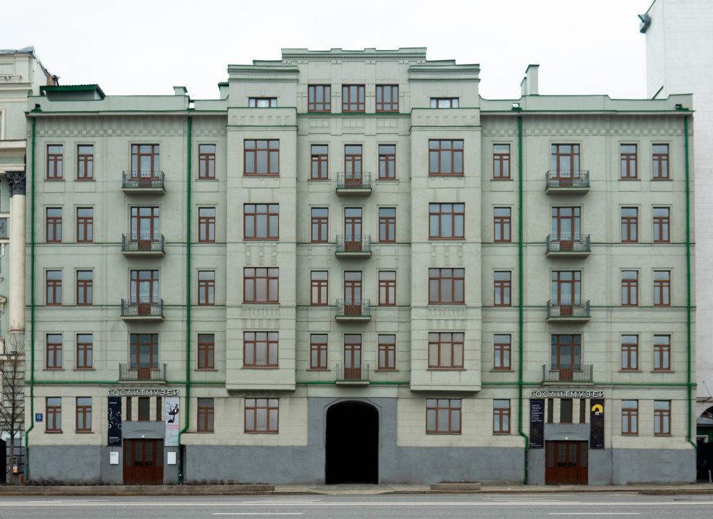 Элитный многоквартирный доходный дом на Зубовском бульваре был построен в 1912 году М. М. и А. Е. Любощинскими. За короткое время он стал местом проживания московской интеллигенции. В доме часто бывал свояк Любощинского – академик В. И. Вернадский. Центральную арку дома кинорежиссер Л. А. Кулиджанов увековечил в фильме «Дом, в котором я живу».