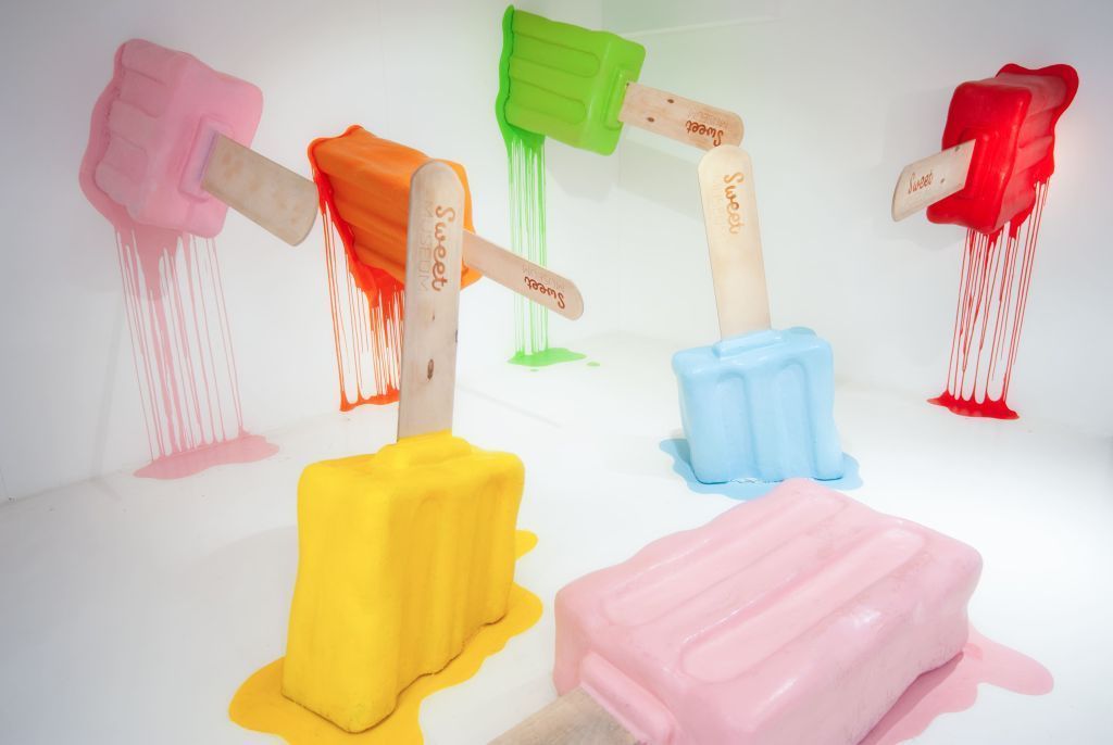 В музее можно прогуляться среди громадных леденцов, поваляться на гигантских маршмеллоу, погладить единорогов, сделать селфи с пингвинами, покататься на качелях из сахарной ваты, посидеть на коленях у розового Будды, загадать желание, стоя под двойной радугой.