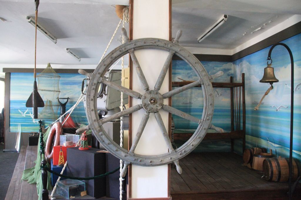 В музее представлен «Морской уголок», где посетители увидят лодку с веслами, рыболовные сети, штурвал, барометр, корабельные часы, рынду, двухъярусная кровать– шконку, брезентовый якорный шар, пульт управления, крючки для плетения сетей и интерьер дома работника рыбной промышленности нач. ХХ в.