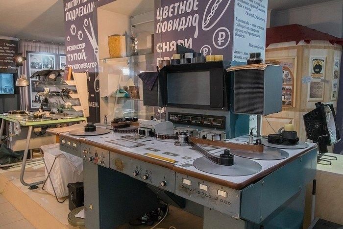 Здесь собраны предметы кинопленочного производства XX века и современного цифрового процесса создания фильмов. Например, можно увидеть: