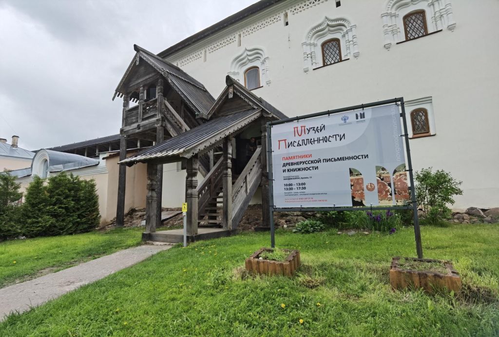 Экспозиция рассказывает об истории древнерусской книги, искусстве книжного украшения, развитии книгопечатания в России, судьбе новгородских библиотек. Представлены древнерусские монеты и печати, каменные кресты и фрагменты штукатурки с кириллическими и глаголическими надписями.