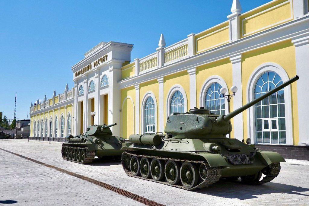 На фасаде выставочного центра «Парадный расчет» размещены два фотопанно с изображением ярких символов Великой Победы – легендарного танка Т-34-85 и Боевой машины реактивной артиллерии БМ-13Н «Катюша». Панно созданы из фотографий уральцев – участников Великой Отечественной войны. Для его составления использовано более 2 000 фотографий.