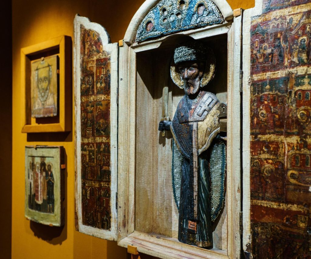 Основная экспозиция музея посвящена русской иконе Нового времени, рассмотреть которую можно в залах «Русская икона. Образы Ветхого и Нового Завета», «Святая Русь. Святые и святыни России», «Небеса в духовной культуре русского Севера», «Святые первых веков христианства», «Святитель Николай Чудотворец. Правило веры и образ кротости».