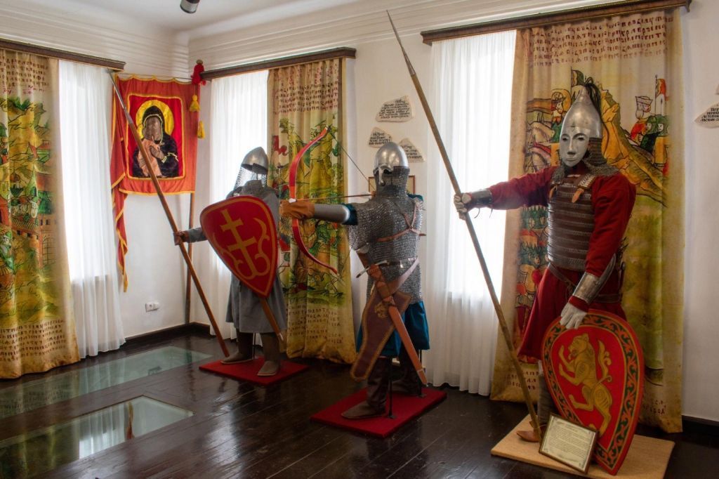 Второй зал расскажет о том, как жили средневековые изборяне: их занятиях, повседневном быте, одежде, украшениях. Третий и четвертый залы экспозиции повествуют о боевой истории города. Здесь представлены подлинные образцы защитного и наступательного вооружения, снаряжения всадника и коня, а также шесть реконструированных комплектов полного воинского снаряжения – доспехи и оружие русских воинов разных эпох, рыцарей Тевтонского, Ливонского орденов, польского воина.