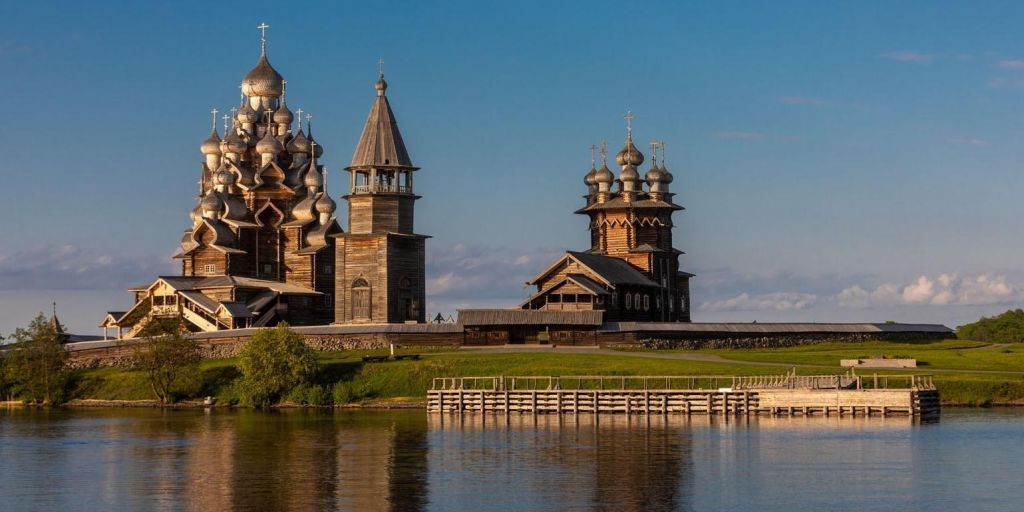 Самая известная достопримечательность острова Кижи – архитектурный ансамбль Кижского погоста, который стал одним из трех первых объектов в России, внесенных в Список всемирного наследия ЮНЕСКО. Сердце Кижского погоста – легендарная 22-главая Преображенская церковь, одно из самых больших и сложных деревянных сооружений в мире.