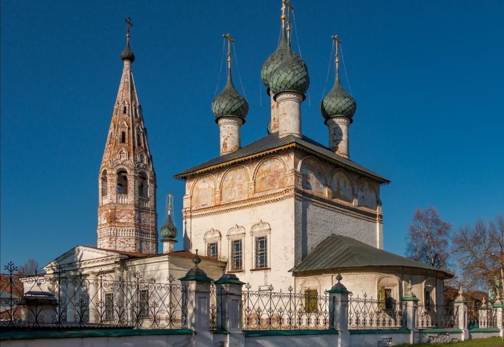В трапезной и четверике перед посетителями предстает возрожденная красота православного храма – 600 квадратных метров уникальной фресковой живописи середины XVIII в., выполненной ярославскими мастерами артели братьев Шустовых, золоченые иконостасы XIX в., экспозиция «Откровение старых церковных книг XVII–XIX вв.» и деревянная религиозная скульптура XVIII в., что является нетипичным и редким явлением в русском церковном искусстве.