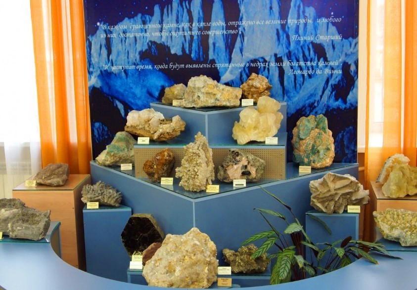 В настоящее время коллекция музея насчитывает более 1 800 экспонатов. Экспозиция «Минеральные богатства Сибири» располагается в основном зале. В 28 витринах образцы минералов размещены по химическому составу: самородные элементы, сульфиды, галогениды, оксиды и гидроксиды, силикаты, бораты, фосфаты, вольфраматы, сульфаты, хроматы, карбонаты. Раздел «Минеральные богатства Иркутской области» – карта области с месторождениями полезных ископаемых и манекен, представляющий геолога в полевом обмундировании. Среди многочисленных представителей минеральных богатств Иркутской области в экспозиции особо выделяются цветные поделочные камни – лазурит, чароит, нефрит. Гордостью являются месторождения железной руды, золота, соли, мрамора, слюды, талька, гипса. Все эти и многие другие минералы представлены в витринах. «Сад камней» представляет собой разноуровневую горку из самых крупных и красивых образцов музея в открытом виде, расположенных на фоне ночного звездного неба с летящей кометой.