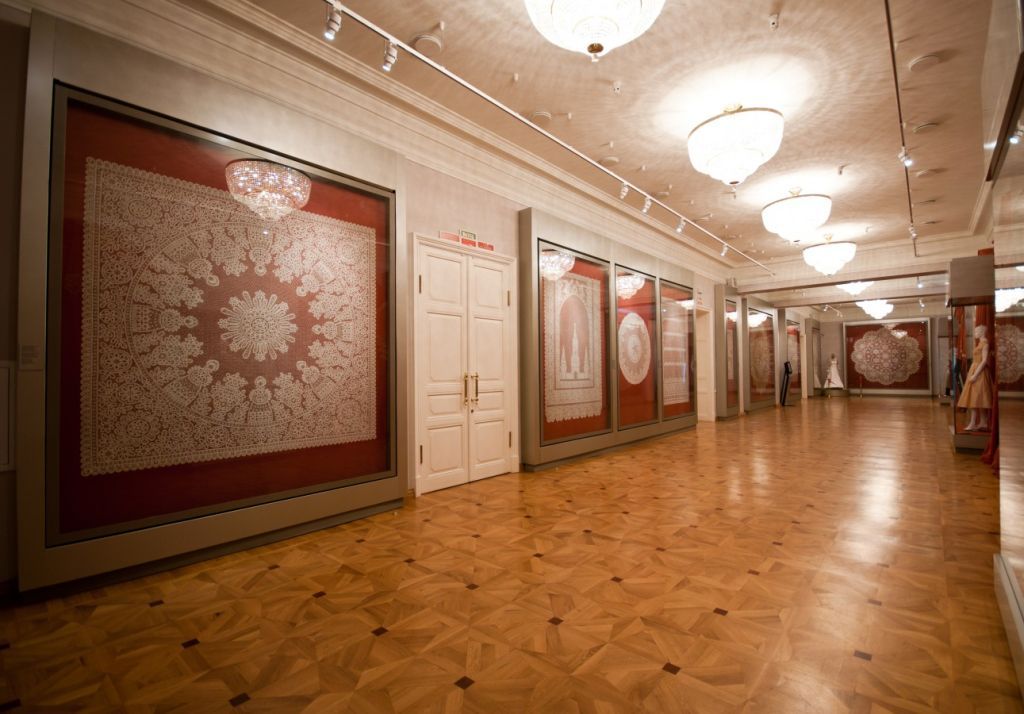 Экспозиция построена в хронологическом порядке. Первый зал посвящен европейским кружевным центрам – Германии, Франции, Польше, Словакии, Испании, а также эпохе зарождения искусства кружевоплетения (XVII–XVIII века), когда плели из золотых и серебряных нитей. В главной галерее представлены экспонаты, раскрывающие следующие кружевные темы: «Кружево в крестьянском костюме и этнографическом текстиле», «Кружевные изделия 1920–1940 годов», авторские произведения художников объединения «Снежинка». На первом этаже музея находятся выставочные залы, салон-магазин, учебный класс; на втором этаже – экспозиционные залы и главная галерея.