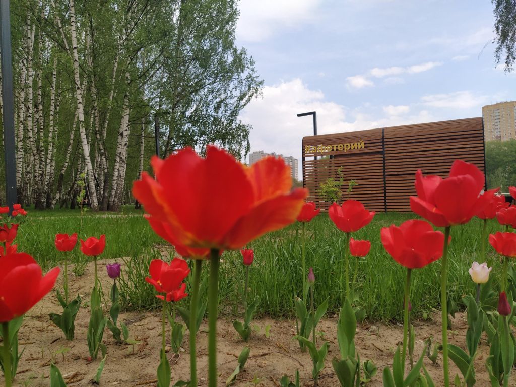 Есть в парке зона для занятия спортом, площадка для выгула собак, туалеты, много мусорок. Облагородили пляж - засыпали белым песком, установили раздевалки.