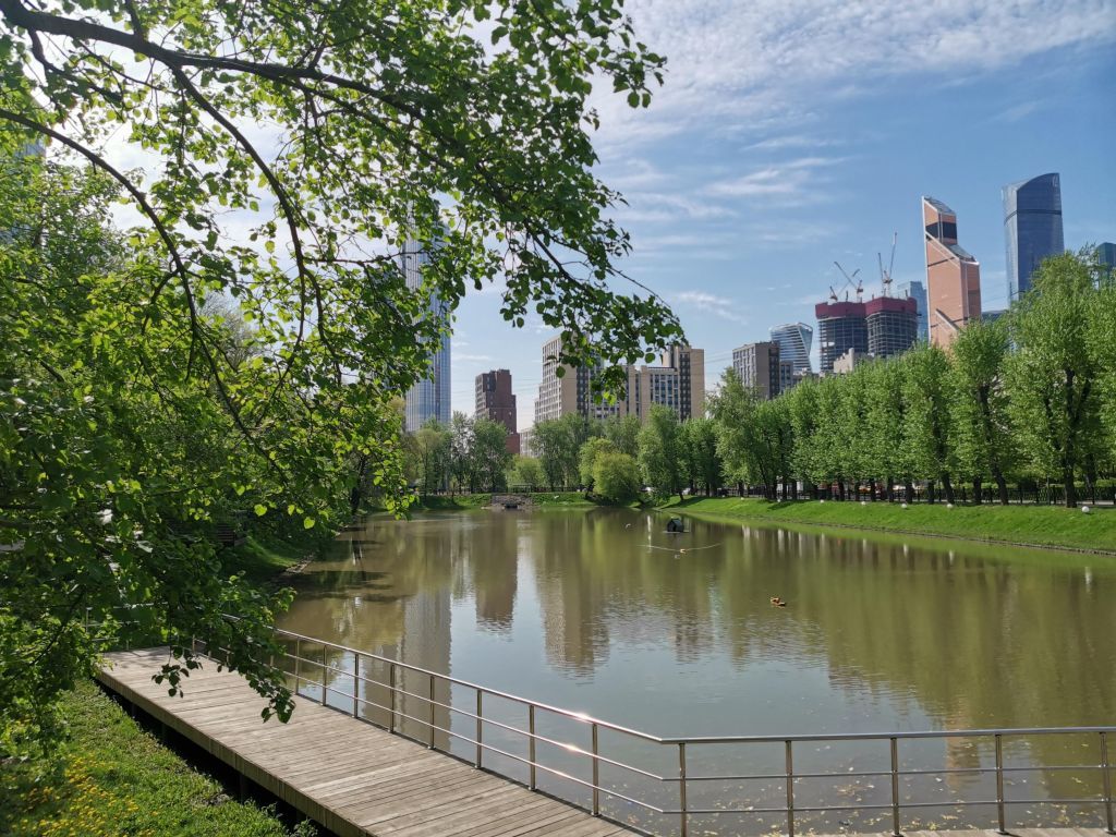 Зона отдыха «Красногвардейские пруды» является историческим продолжением основной территории парка «Красная Пресня». Парк "Красногвардейские пруды" - небольшой, но роскошно благоустроенный парк, раскинувшийся вокруг каскада из трёх сообщающихся между собой искусственных водоёмов - Верхнего, Среднего и Нижнего Красногвардейских прудов. Территория парка занимает около 8 гектаров (площадь самих прудов при этом - примерно 4 гектара) и является по сути историческим продолжением парка "Красная Пресня". Пруды расположены друг за другом, благодаря чему парк имеет вытянутую форму и ярко выраженное зонирование на 5 тематических фрагментов: посетители с разными интересами имеют возможность практически не пересекаться между собой, оставаясь в разных частях парка. Вокруг прудов проложена сеть пешеходных аллей и дорожек, а также велодорожки, вдоль которых установлены лавочки для отдыха посетителей. Отлично благоустроены и сами пруды: на берегу Верхнего обустроили многоярусный настил с клумбами и кадками для растений, Средний окружают уединённые беседки над водой, а на Нижнем разместили лодочную станцию, амфитеатр и настил-солярий. А ещё на водной глади установлены домики для уток. Для детей предусмотрена уникальная игровая площадка с домиками на деревьях и настоящим верёвочным парком - её большие размеры и увлекательность сделали ей славу одной из лучших детских площадок Москвы, и многие приезжают сюда с детьми только ради неё.