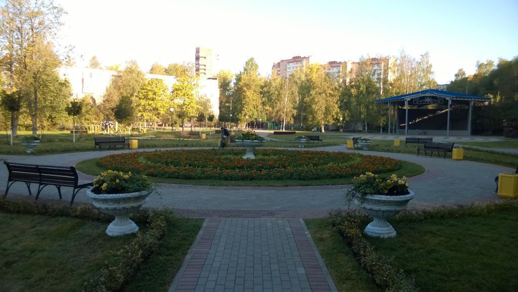 Парк расположен в центральной части микрорайона Сходня. Эта территория является местом отдыха горожан на природе в черте города. Парк удивляет своей красотой, атмосферой спокойствия и единения с природой среди великолепия березовых аллей. На сегодняшний день здесь есть несколько игровых детских площадок, которые оборудованы мягким резиновым покрытием, все конструкции выполнены из пластика. Летом на территории парка организуются детские аттракционы, надувные города и батуты, которые не остаются без внимания детей.