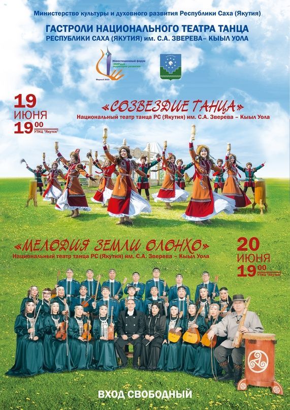 Приглашаем на гастрольные концерты: "Созвездие танца" Национального театра танца Республики Саха (Якутия) им. С.А. Зверева-Кыыл Уола и оркестра национальных инструментов РС (Я) "Мелодия земли олонхо".